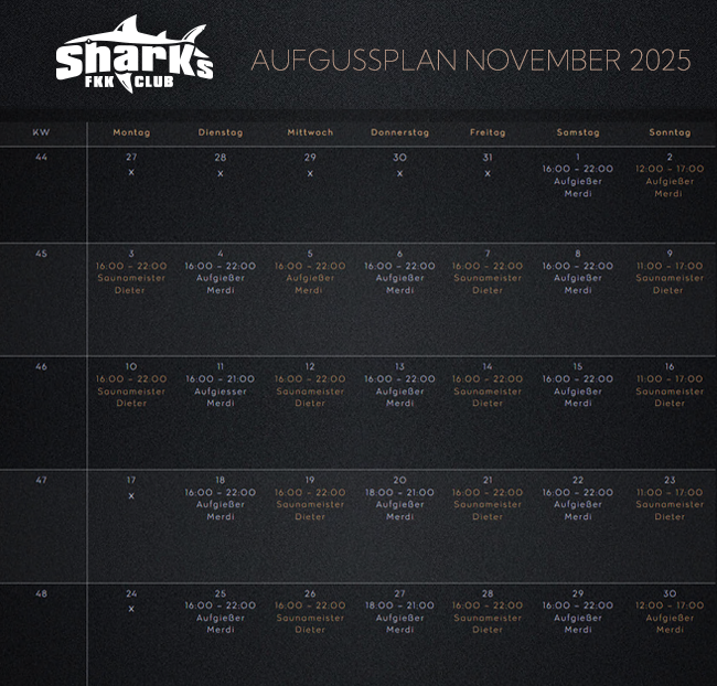 Das können wir leider nicht beantworten denn alle FKK Gäste entscheiden selbst, wann sie anwesend sein möchten. Grundsätzlich ist im Sharks aber zu jeder Zeit etwas los, ein Besuch lohnt sich immer 🙂